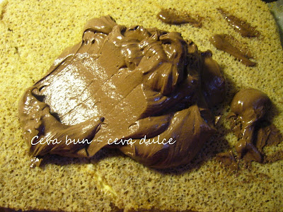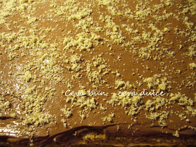 Deasupra presaram nuca macinata. Dam la rece pentru 2 ore apoi feliem. Este extrem de delicioasa!!